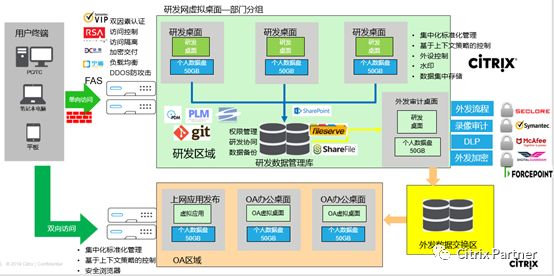 1)云桌面方案采用Citrix ,通過(guò)軟件定義電子圍欄,軟件定義安全策略和自適應(yīng)傳輸協(xié)議等領(lǐng)先技術(shù),為企業(yè)級(jí)客戶(hù)提供了全方位保障的安全研發(fā)方案。