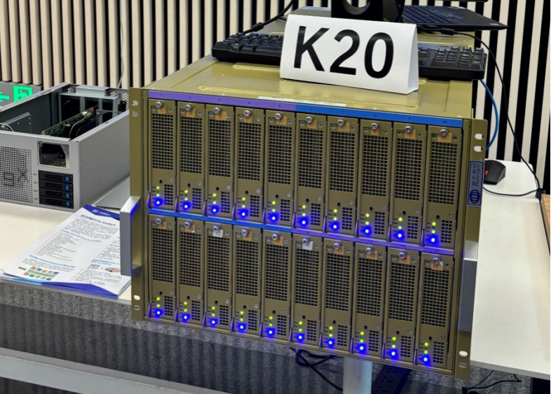 圖:支持20卡(16生產(chǎn)卡+4熱備卡)的K20現(xiàn)場(chǎng)點(diǎn)亮