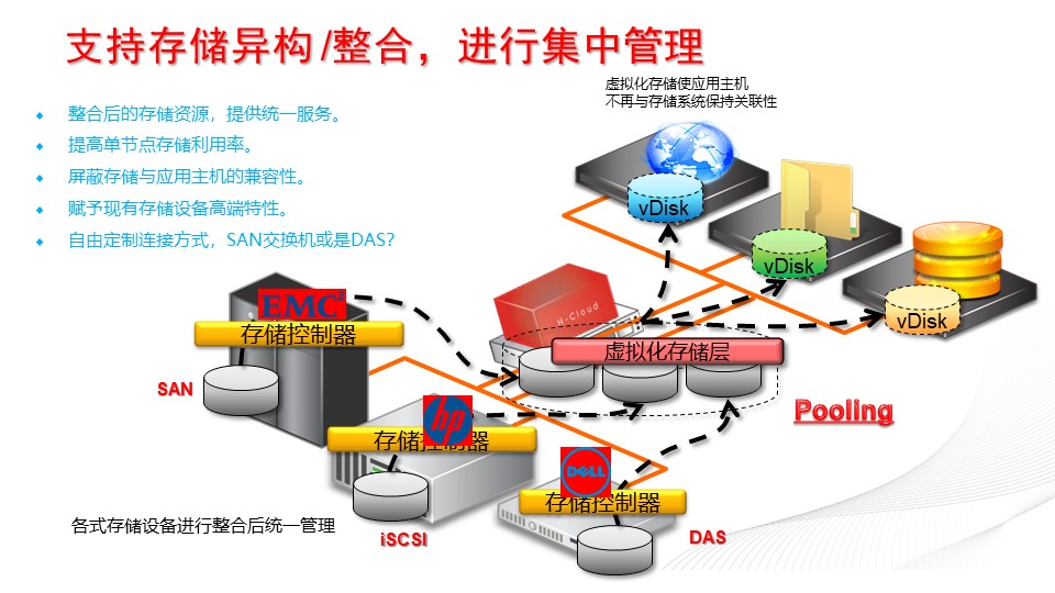 虛擬磁盤池是 H-Cloud 提供存儲(chǔ)陣列的整合功能。如前所述,池可能包括多種品牌和型號(hào)的磁盤存儲(chǔ)層,從而有效地創(chuàng)建不同的價(jià)格/性能/容量特性。