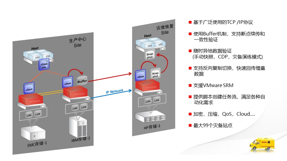 從擴(kuò)展性角度分析,由于 H-Cloud 支持多種主機(jī)操作系統(tǒng)和多種群集技術(shù),因此未來(lái)用戶新增不同業(yè)務(wù)和不同的主機(jī)平臺(tái)時(shí),都可利用已構(gòu)建好的容災(zāi)平臺(tái),真正實(shí)現(xiàn)“業(yè)務(wù)持續(xù)性企業(yè)統(tǒng)一虛擬化存儲(chǔ)平臺(tái)”的技術(shù)目標(biāo)。